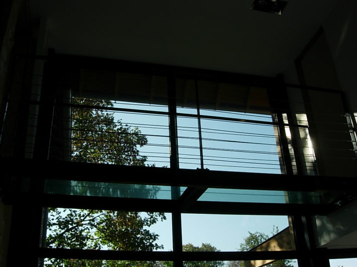 Pose sur chassis acier, joint en sous face, silicone neutre de finition.